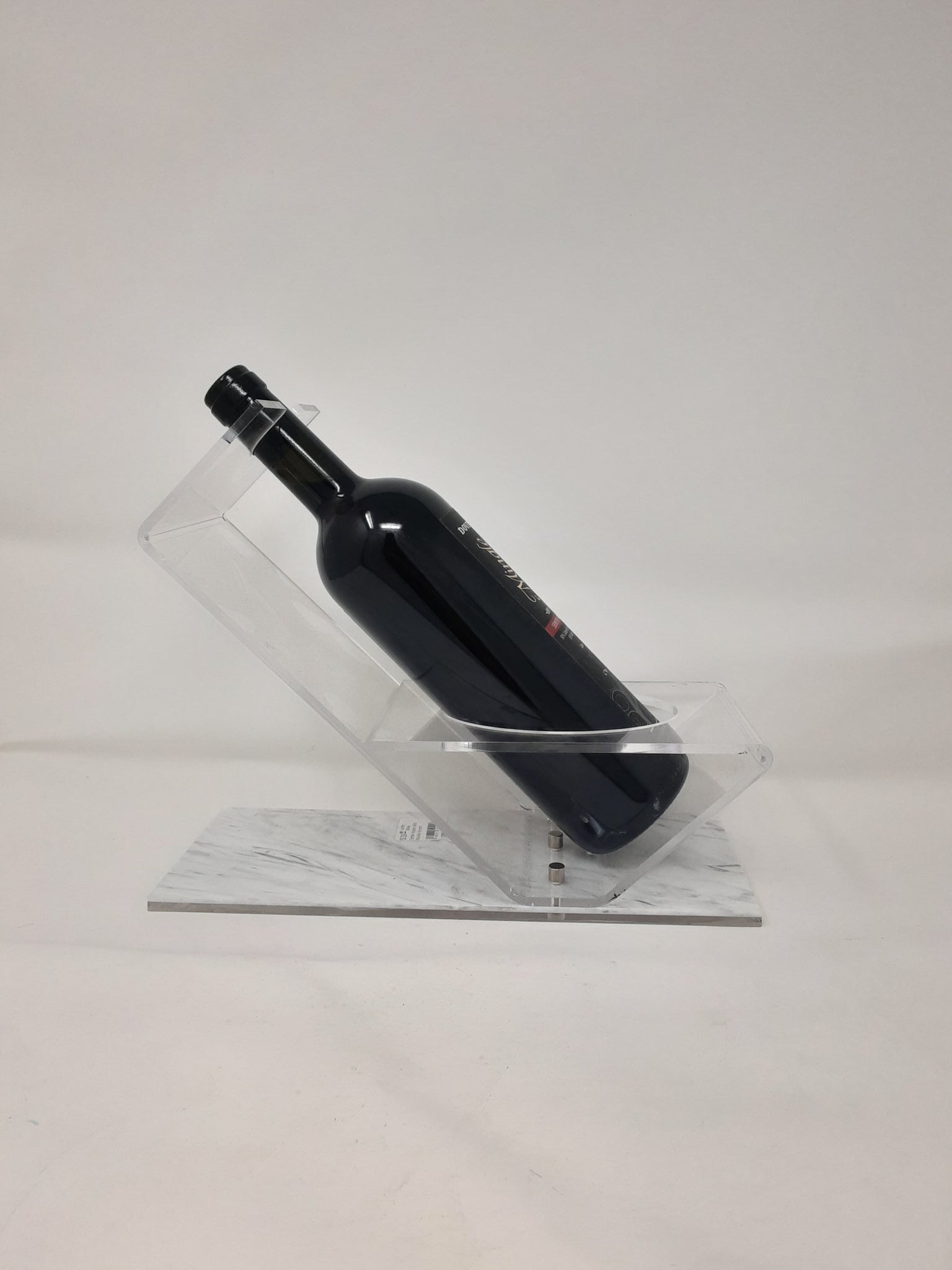 • Load image into Gallery viewer, Lucite Wine Bottle Holder With Marble Accent